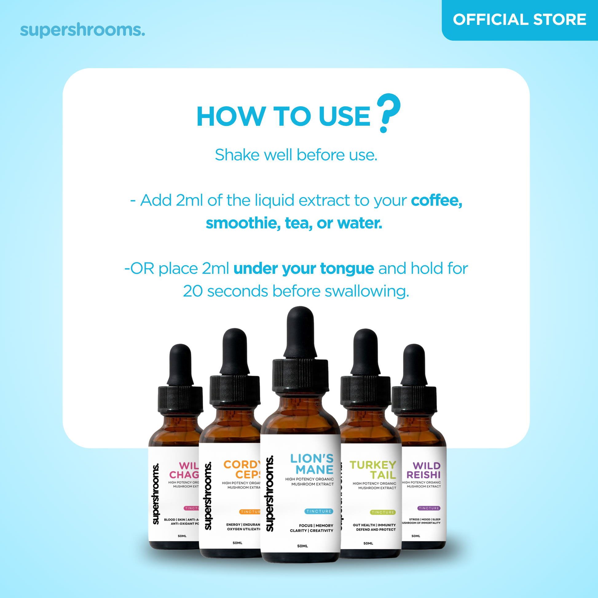 - Take 2 ml under the tongue, wait 20 seconds before swallowing