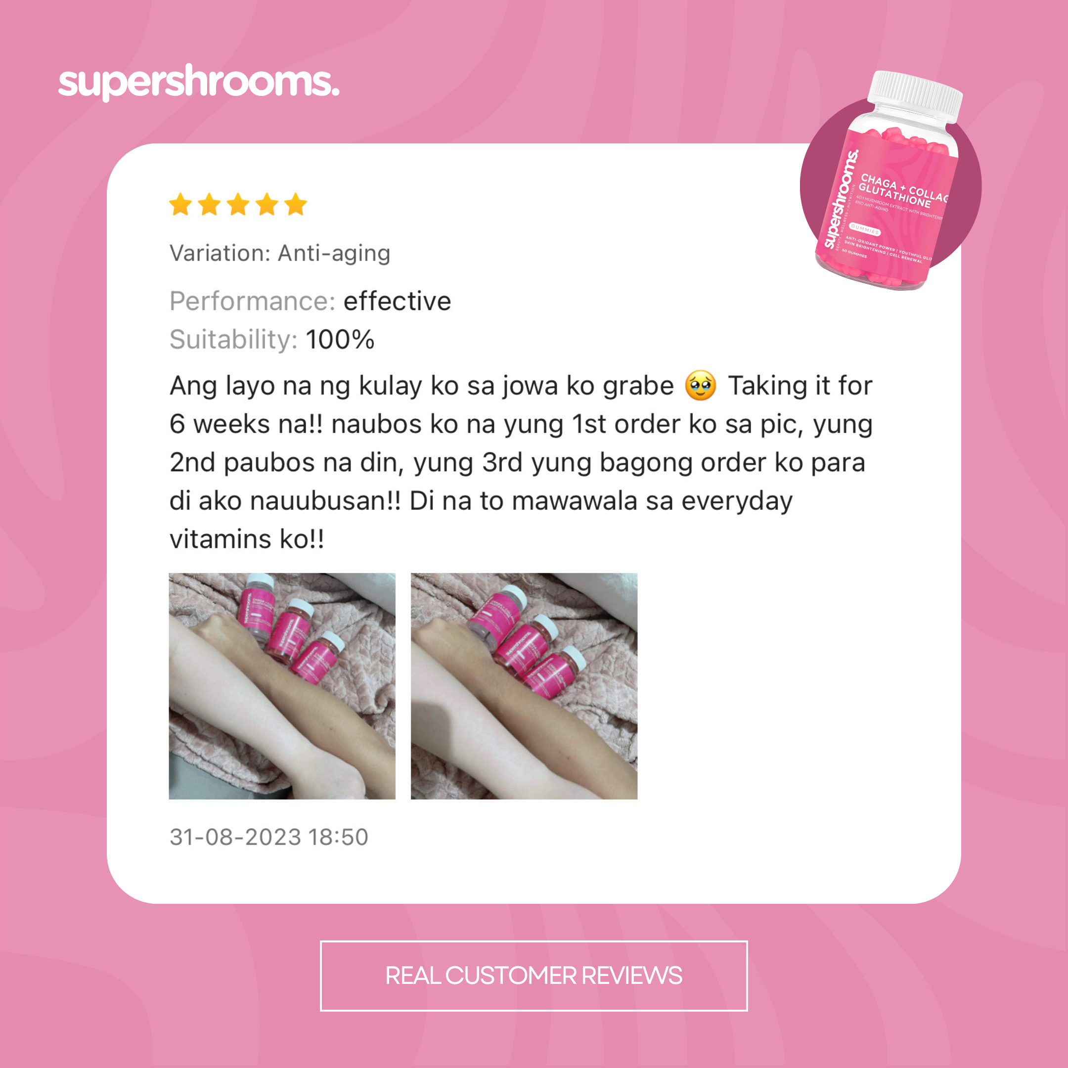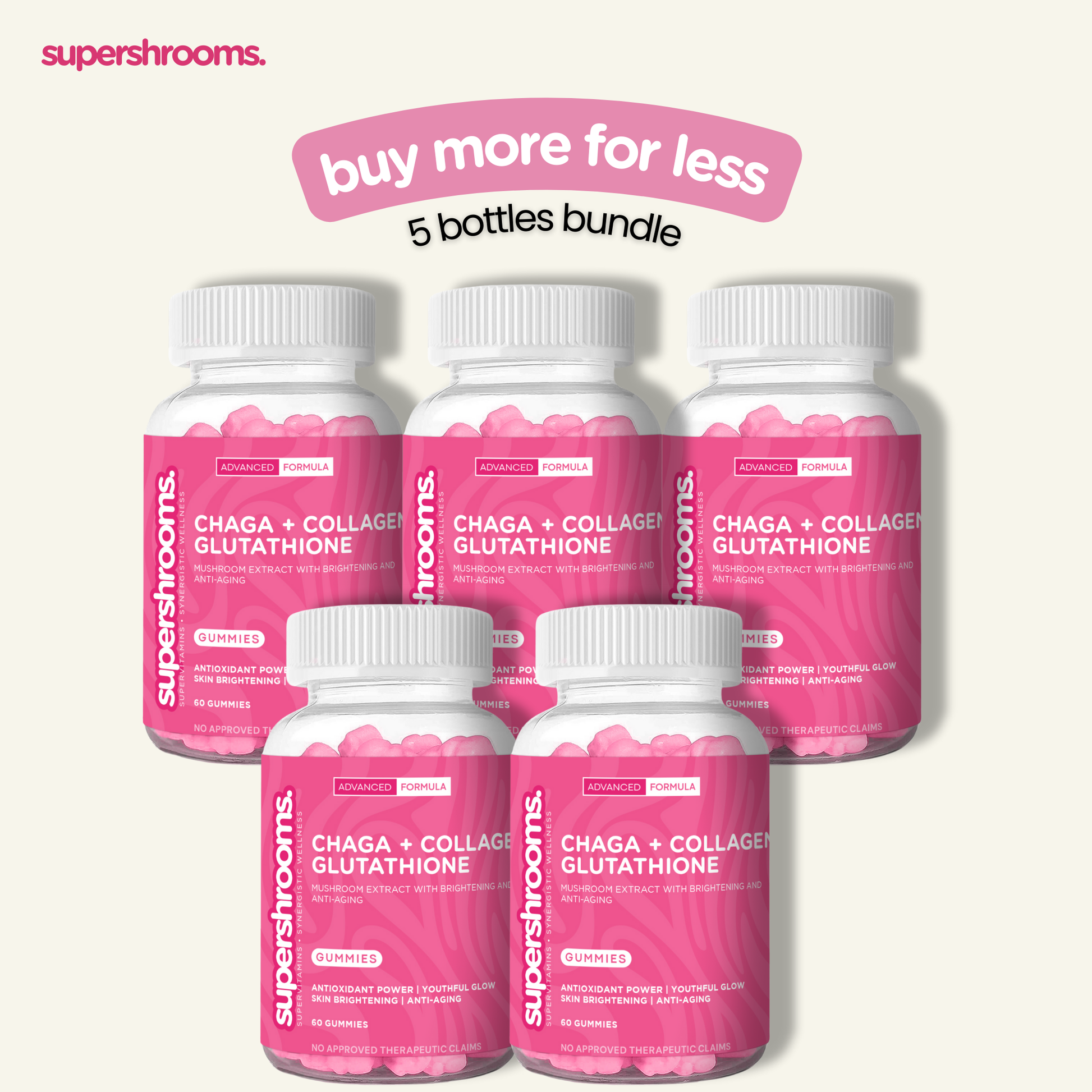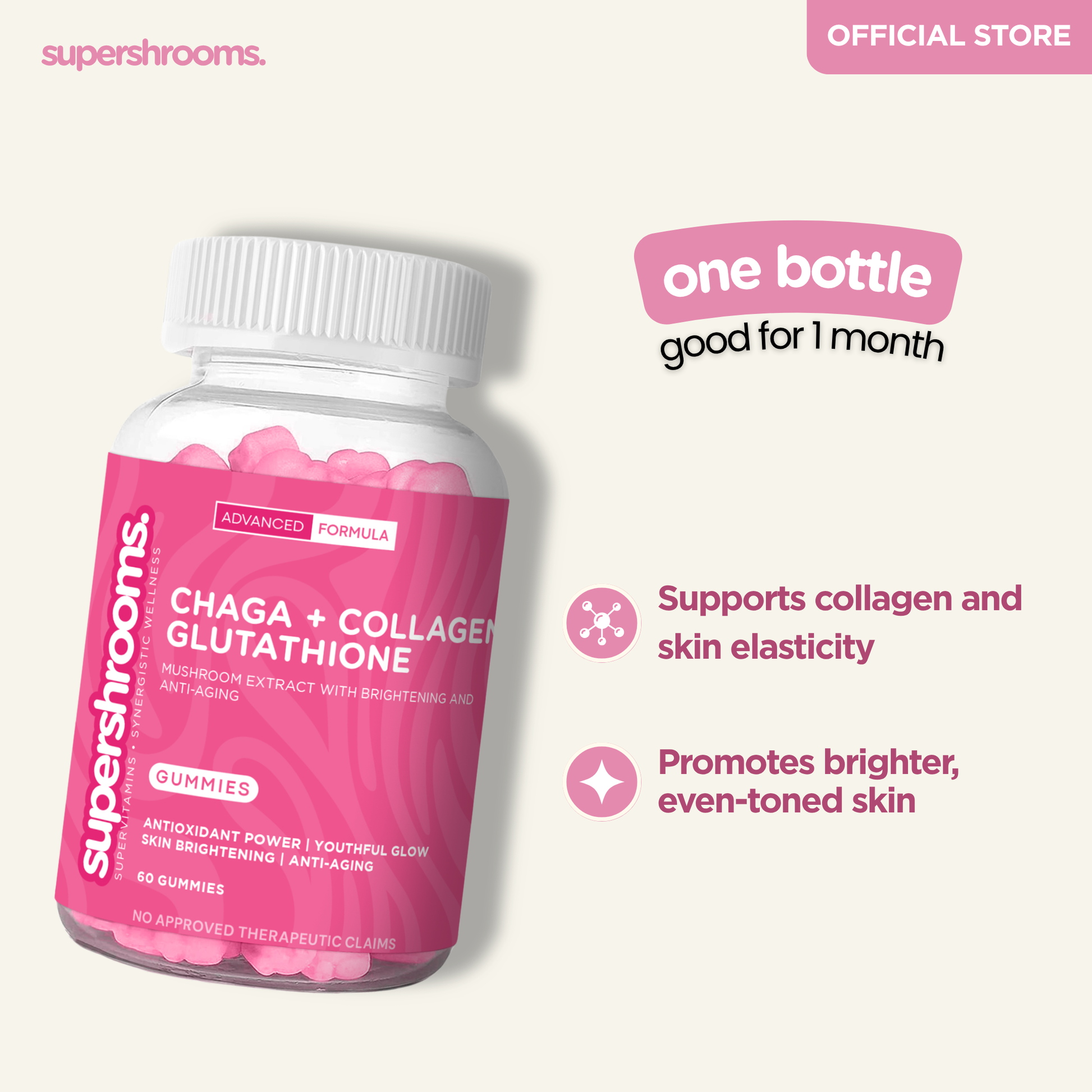 Boost your skin's radiance and vitality with Chaga + Collagen + Glutathione gummies. Packed with powerful antioxidants, these gummies promote a youthful glow and help brighten and renew your skin cells. Elevate your skincare routine and achieve a healthier, more radiant complexion.