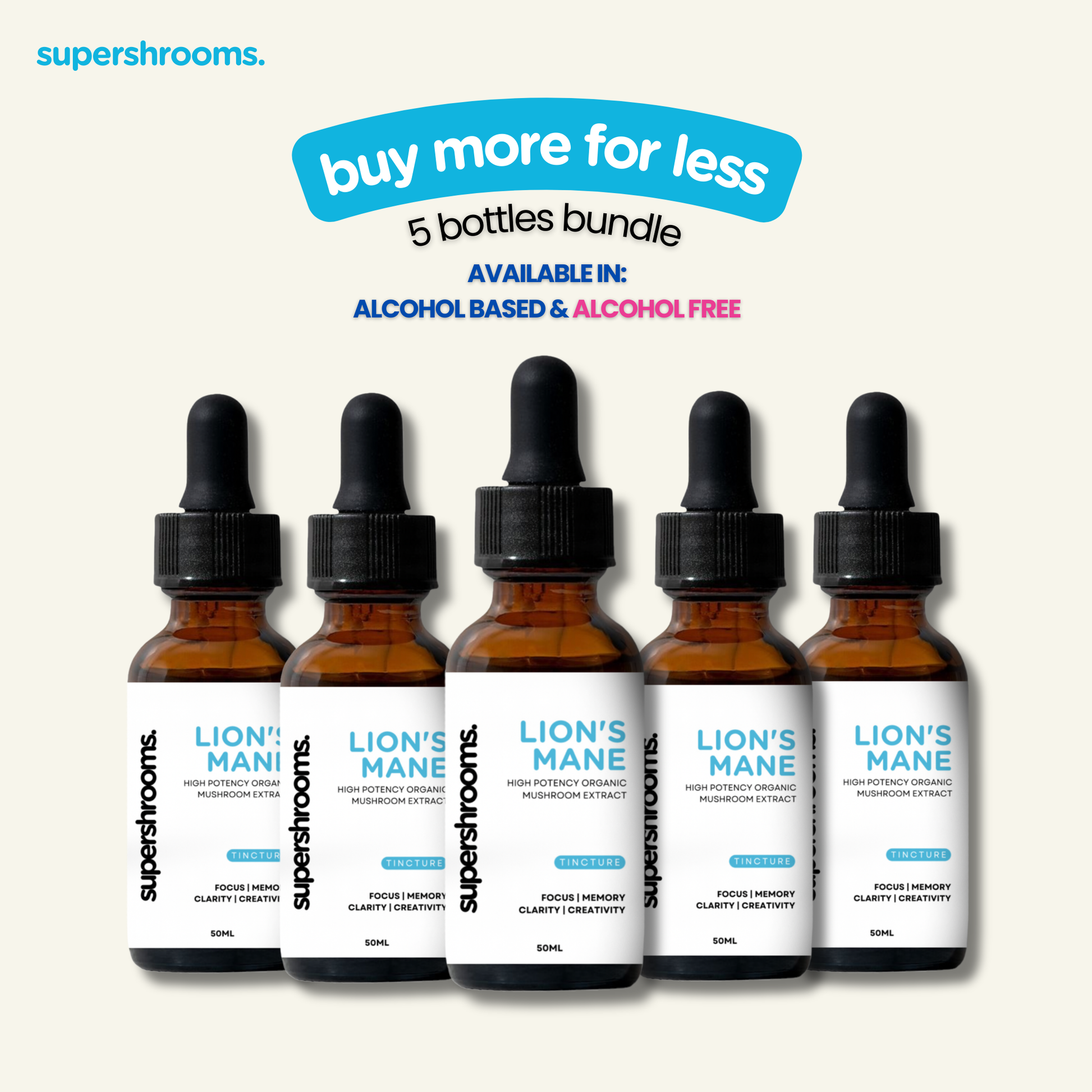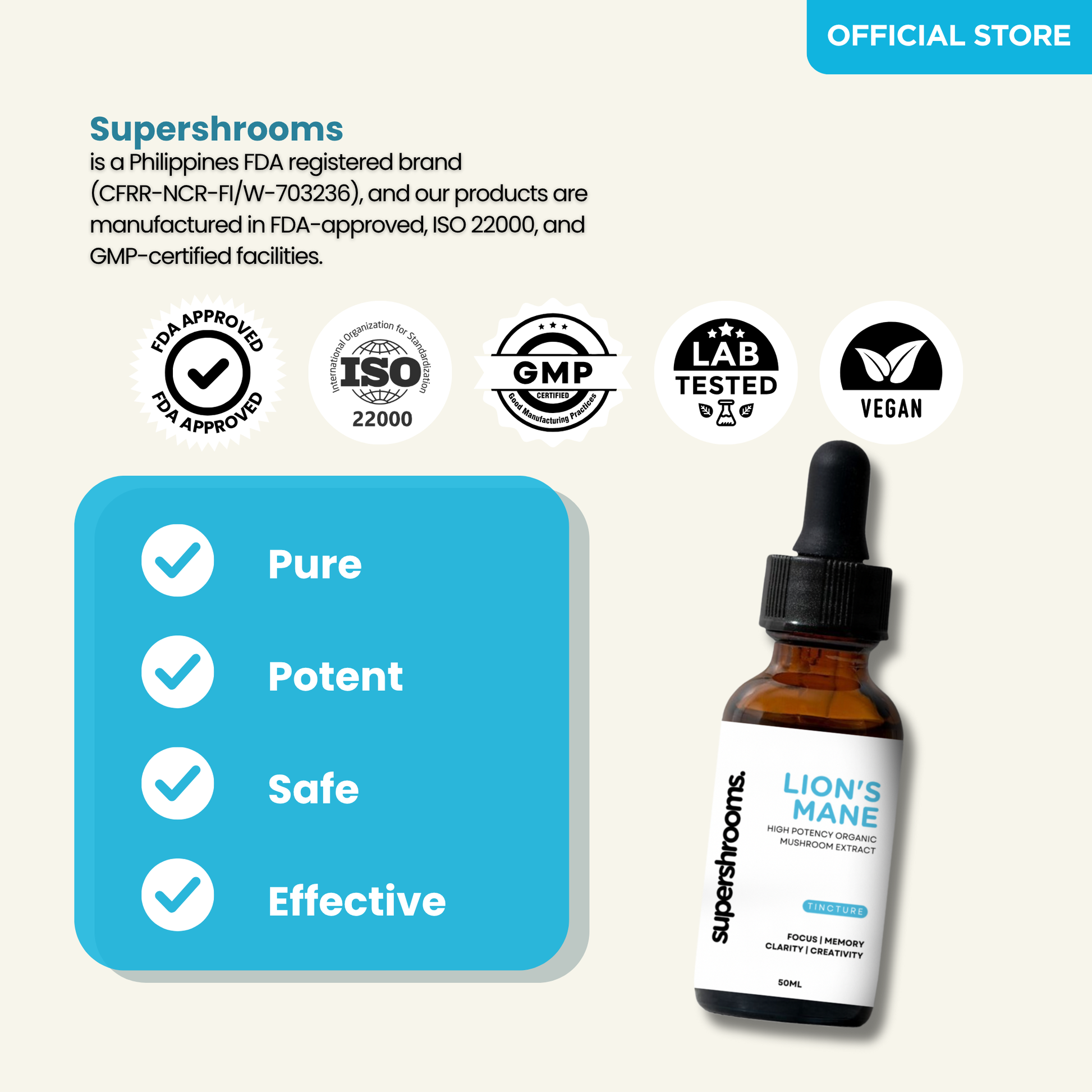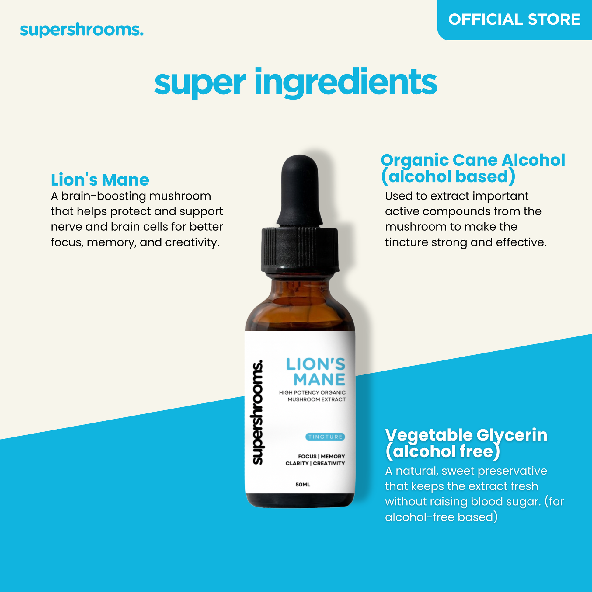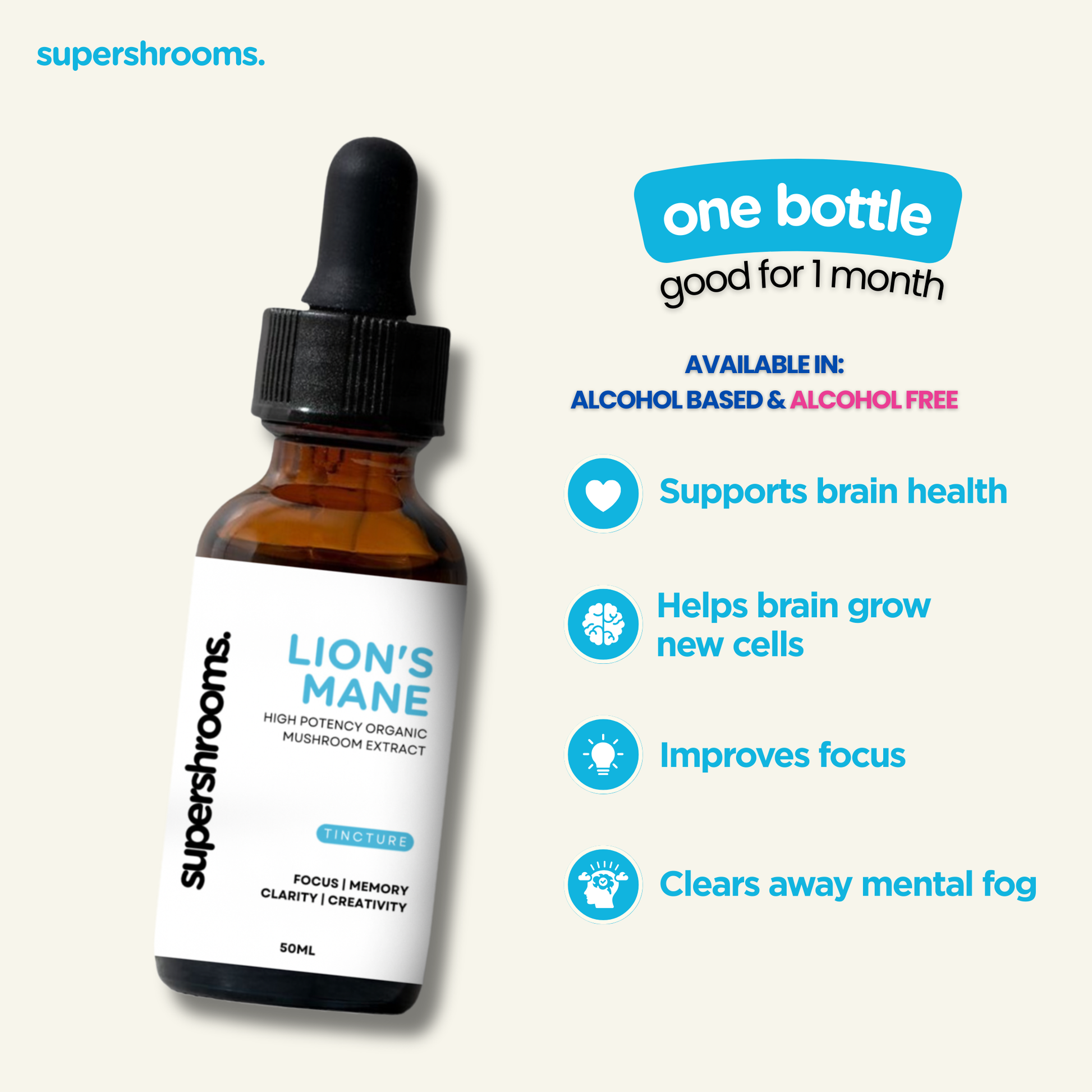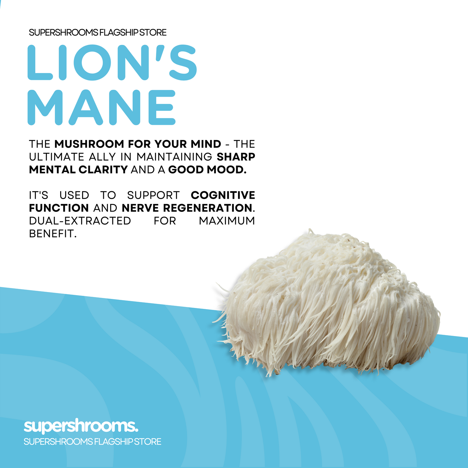 Lion's Mane supports cognitive function, enhancing memory, learning, and overall mental performance.