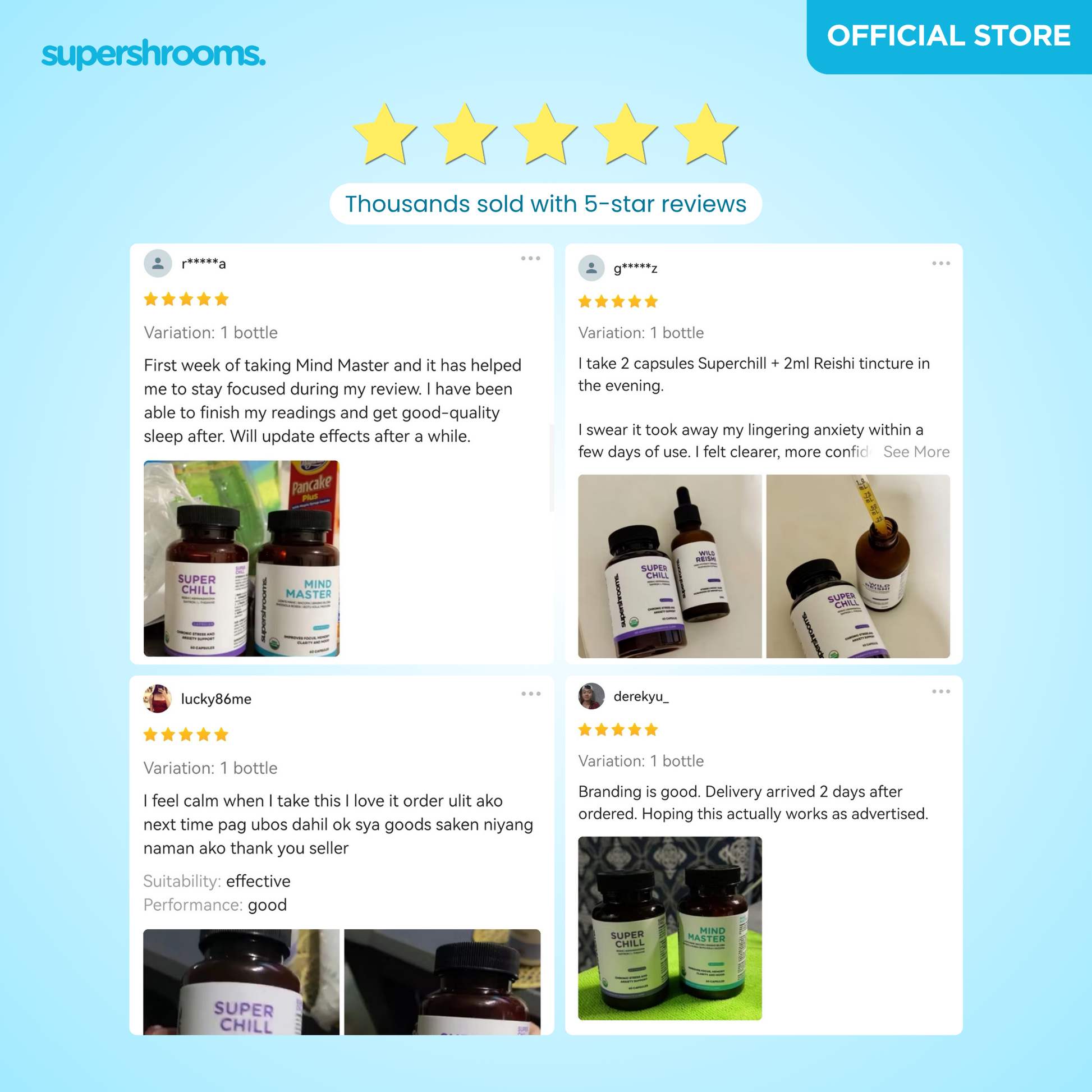 You can find us on Shopee, Lazada, and TikTok Shop. Additionally, orders can be placed directly on our website. For same-day deliveries within Metro Manila, simply reach out to us via our Facebook or Instagram page, and a member of the Supershrooms team will be happy to assist you.