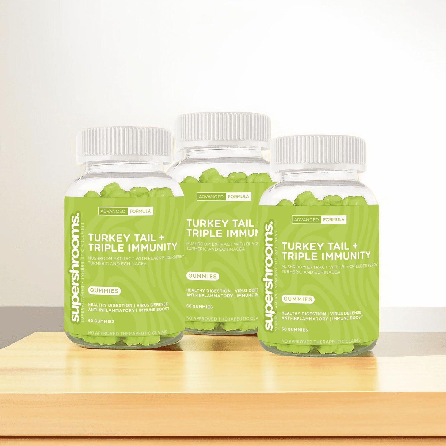 Get ready to boost your immunity with Turkey Tail + Triple Immunity gummies! Packed with black elderberry, turmeric, and echinacea, these clinically studied ingredients will make you feel as good as they taste. Unlock the power of mushrooms and say goodbye to sickness.